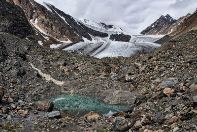 Кетова Вера Большой Актру Горный Алтай. Северо-Чуйский хребет. Сверху снисходительно созерцает нашу мелкую возню г. Актру-Баш. Наконец добрались до подножия своей мечты - огромного ледника Большой Актру.