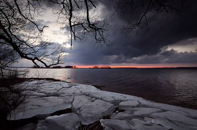 тихо тают выброшенные ветром на берег остатки ледяного панциря