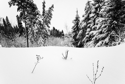 Даже если учесть, что это ч\б фото, небо не должно быть просто белым пятном, как и снежная полянка. Рельефность всегда украшает снимок.