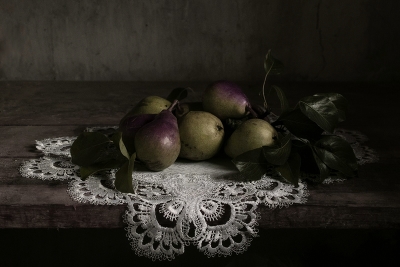 Груши на кружевной салфетке