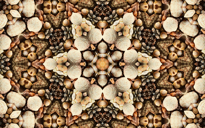 Kaleidoscope effect on a bunch of scattered seashells