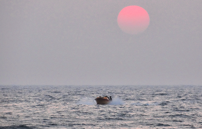 , Да, вечер на море был с дымкой и солнце постепенно скрывалось в ней!