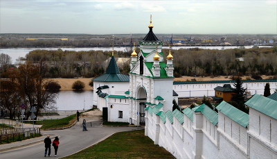 Svetlana Shapiro, Этот кадр от угла стены. Сам монастырь расположен на крутом склоне правого берега Волги, обнесен по периметру крепостной стеной с бойницами. Это было в среду, ворота были открыты, доступ на территорию был разрешен.
