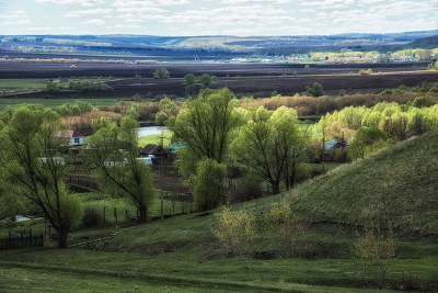 село, весна, деревья
