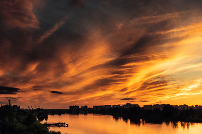 Sunset with colorful sky and the river