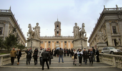 Лестница Капитолия со статуями Диоскуров в Риме и с Сенатским дворцом