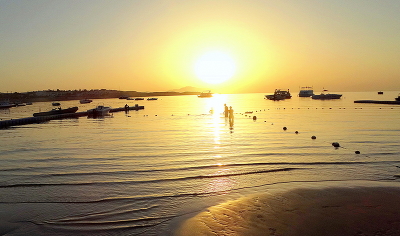 На фоне яркого утреннего солнца приятно принять морской моцион