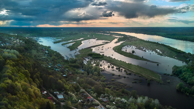 , Нижегородская область. Разлив Оки в районе города Горбатов.
