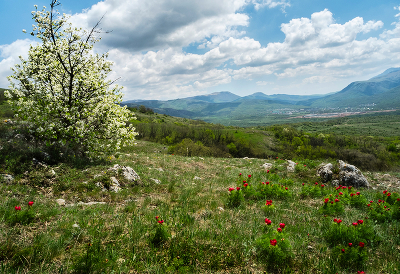 Полянка с тюльпанами