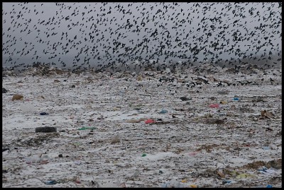 Минская городская свалка тбо. Страшное и одновременно завораживающее место. Этот снимок на самом верху. Высота 9-ти этажного дома. Огромная площадь и огромное количество птиц.