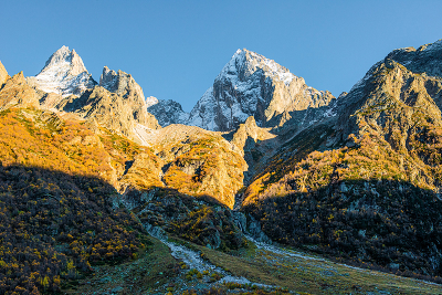 Карачаево-Черкесия.Гора Двузубка-3605 м и гора Нахар-3785 м.Нахарский хребет.