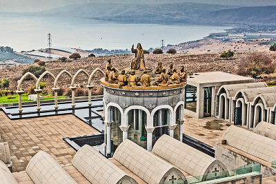 «Domus Galilaeae» 1 Увидев народ, Он взошел на гору; и, когда сел, приступили к Нему ученики Его. 2 И Он, отверзши уста Свои, учил их, говоря:… На юго-восточном склоне горы Блаженств, возле Кинерета, римскими католиками в 2000 году был построен Международный центр Domus Galilaeae, (Галилеский Дом). Считается, что не далеко от этого места была произнесена знаменитая Нагорная проповедь. А рядом со зданием расположены склепы (кельи), молельный домик, на крыше которого находится скульптура Иисуса, читающего нагорную проповедь своим апостолам. |