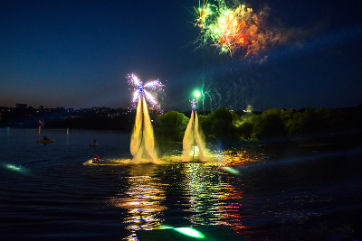 Выступление флайбордистов в акватории реки Свияги на день молодежи в Ульяновске