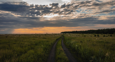 На закат.
