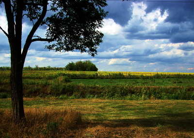 Дерево,поле, небо облака