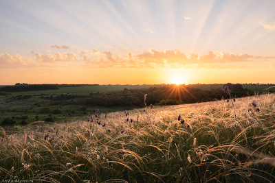 "Шалфей и ковыль" В степях Курской области помимо лугового шалфея растет также шалфей поникающий. Однако в отличие от первого, это растение предпочитает более сухие участки, это типичный цветок ковыльных степей. Центрально-черноземный заповедник, участок Баркаловка |