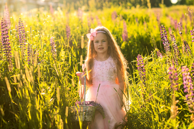 Полина пробирается сквозь люпины