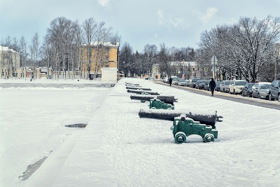 Зимний Кронштадт. Пушки у Итальянского пруда.