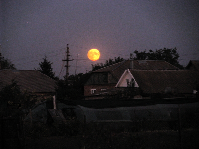 Вечер,село,небо,восход луны