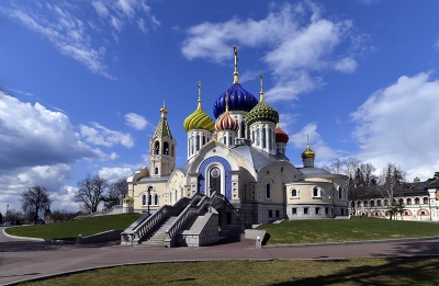 Соборный храм благоверного князя Игоря Черниговского 20 января 2010 года патриарх Кирилл совершил чин освящения закладного камня в основание храма святого благоверного князя Игоря Черниговского[4]. 4 марта 2011 года патриарх Кирилл освятил кресты и колокола строящегося храма[5]. 17 июня 2012 года патриарх Кирилл совершил чин великого освящения соборного храма и отслужил первую Божественную литургию в новоосвящённом храме[6][7]. Церковь венчают купола оригинальной конструкции, изготовленные из фарфора. Главный купол, шириной около 10 м, состоит из 18 000 фарфоровых плиток, покрытых кобальтовой глазурью. Он разделён на 24 сегмента, отделённые друг от друга золочёными перемычками. Остальные купола тоже выполнены из глазурованных фарфоровых пластин. Весь золочёный декор также изготовлен из фарфора и покрыт 12-процентным керамическим золотом, обожжённым при температуре 850 °C[8].[неавторитетный источник?] Церковь рассчитана на 1200 человек. Подобно кафедральному соборному храму Христа Спасителя, церковь имеет цокольную и стилобатную части. Построена в русском стиле, сочетая в себе элементы различных школ русского зодчества. Входит в состав Михайловского благочиния Московской епархии. |