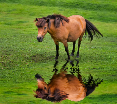 Николай Семёнов[ Спасибо за мнение! Не смотря на то, что все мнения относительны, они имеют одно полезное свойство-характеризуют его автора ! Полагаю, что ваше не вполне тактичное ерничание основано либо на завышенной самооценке, либо на неправильном восприятии действительности. Объясняю: на снимке запечатлена не трава в небе, а рельеф местности - склон, часть берега и пони у воды. Пони-это такая порода маленьких лошадей.