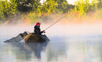 Рыбак на лодке.