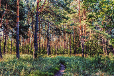 Когда утренний свет.. По дорожке в лесу. Утром в июле, когда теплый свет после рассвета.. Сосны леса, смешанный.. Вдаль по дороге, вернее при выходе из леса. Боковой свет утреннего солнца, проникающий в лес. |