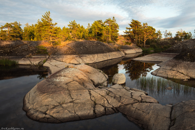 Когда уровень Ладожского озера падает, на некоторых островах можно увидеть вот такой причудливый ландшафт из скал, озер, островков и проливов. Карелия, Сортавальский район