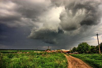Дорога,село,деревъя,грозовые тучи