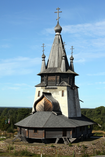 Церковь Николая Чудотворца.. Не люблю современные храмы, но это не про нее...Никольская Церковь(2003).Повенец.Массивное, трапециевидное основание из бетона совершенно не вяжется с привычной архитектурой православных храмов. Оно скорее напоминает оборонительную башню с небольшими окнами-бойницами, а серый бетон, из которого выполнено основание храма, кажется продолжением таких же серых и мрачных стен канала.Атмосферу подчеркивает небольшая деревянная звонница, которая своим видом больше напоминает сторожевую вышку лагеря. Никольский храм построен в память о погибших на строительстве ББК узниках ГУЛАГа. Какой ценой был построен канал доподлинно не известно, но историки называют цифры от 50 до 200 тысяч человек, погибших в ходе великой стройки, длившейся меньше 2-х лет..... |