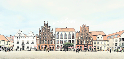 Marktplatz. Universitäts- und Hansestadt Greifswald. Geburtsort von Caspar David Friedrich.