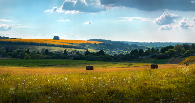 Дневное июльское солнце, щедро заливает луга и поля жаркими лучами. Земля пахнет травами, летом.