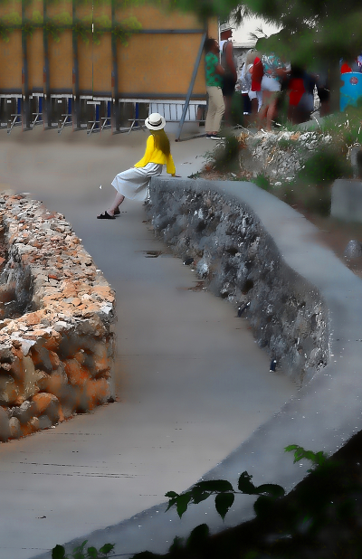 Виктор Кириллов, лично у меня здесь возникло ощущение, что автор очень неумело и неряшливо "заштамповал" других людей, сидящих на этой стенке (ощущение, что на земле остатки ног). Однако, посмотрев страницу автора понял, что всё гораздо серьёзнее.?