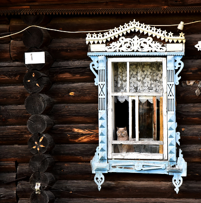 Лето в деревне. Мудрый кот созерцает жизнь в окошке