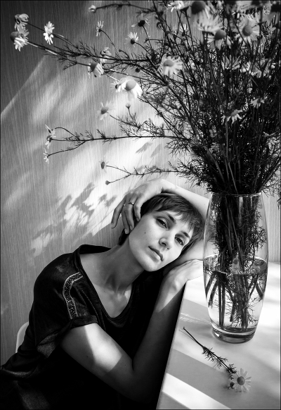 Виктор Кириллов, Доброго вечера, Виктор. И всё- же, позволю себе с Вами не согласиться... "Театр", в этом согласен, делает не ромашка, а наклон головы модели, рука и световые пятна (тени) на стене и подоконнике. Всё остальное вторично, на мой взгляд... Ромашка не пускает зрителя внутрь снимка, в этом проблема и сколько бы зритель не стоял у этого театра спрашивая лишний билетик, внутрь снимка попасть ему не суждено... Спасибо.