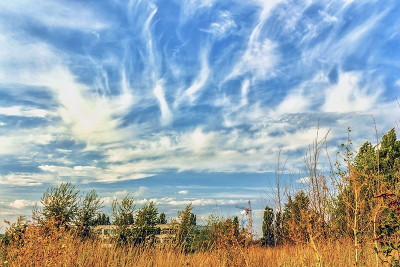 Утром за городом. Когда мягкий солнечный свет.. На рассвете, как только солнце поднялось над горизонтом.. И когда формируются облака на небосводе. В виде короны...