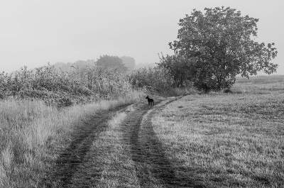 Снимал утром туман на реке,бродили по берегу два щенка,потеряли,или брошенные.