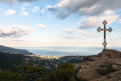 Ставри-Кая мощный утёс на западной окраине Ялты. Высота 663 м. Название греко-тюркское: ставрос — «крест», кая — «скала». |