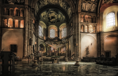 Без названия Апостольская церковь - католическая церковь в городе Кёльн в районе Ноймаркт (de: Neumarkt (Köln)) (северная часть старого города (de: Köln-Altstadt-Nord)) (федеральная земля Северный Рейн-Вестфалия). Церковь расположена на улице Apostelnstraße. Апостольская церковь представляет собой романскую трёхнефную базилику с двумя трансептами. Церковь имеет одну западную и две восточных башни. Западная башня, имеющая высоту 67 м, является третьей по высоте среди всех романских церквей Кёльна, уступая только церквям Большой Святой Мартин и Святого Северина. Восточное средокрестие венчает восьмиугольный купол-фонарь. |