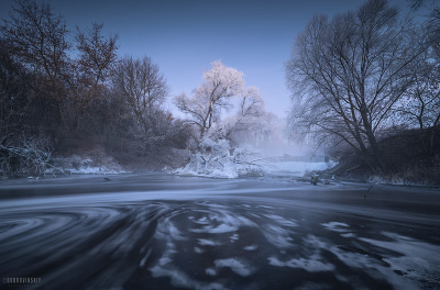 Был бы передний план в фокусе.., хотя . может , была задача привлечь взгляд к заднему плану ? Но я больше смотрю на узоры на льду...?