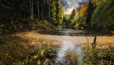 Красиво опавшая листва окружила спокойную воду!