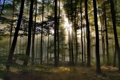 Уходящий туман и восход солнца. Сегодняшнее утро в лесу.