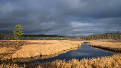 Интересное фото: сочетание хмурого неба и яркой осенней травы!