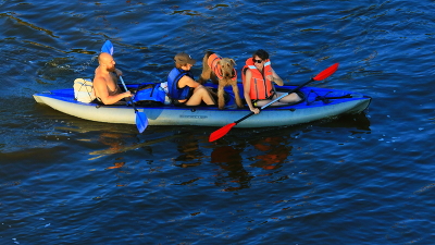 УХ,А вода какая неспокойная!Собака ведёт себя в лодке идеально. Выразительный снимок!