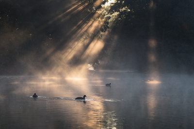 осень, утро, туман, свет