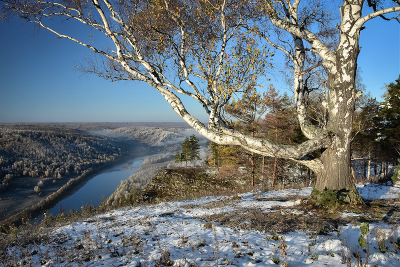 Берёза на утёсе в октябре