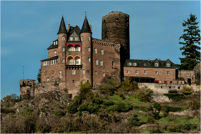Замок Катц (нем.Burg Katz) Замок Катц (нем.Burg Katz) стоит на выступе скалы на берегу реки в прекрасной Долине Среднего Рейна. Из окон и со стен замка открывает завораживающий вид на окрестности и прекрасную долину Рейна, внесенную Юнеско в список Всемирного наследия. Недалеко от замка Катц находится его собрат, замок Маус (нем.Burg Maus), а на противоположном берегу расположены руины крепости Райнфельс (нем.Burg Rheinfels). Замок Катц был построен около 1371 года по распоряжению графа Вильгельма II Катценельнбогена (нем.Wilhelm II Katzenelnbogen), который назвал его своим именем – Катценельнбоген. Это название показалось народу слишком трудным и замок стали называть Катц (Кошка). |