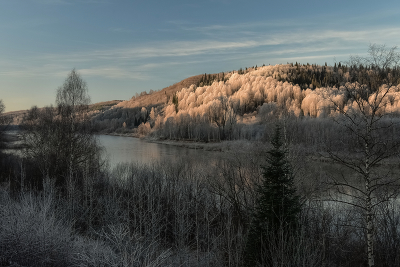 Замечательный зимне-осенний вид с солнечной подсветкой!