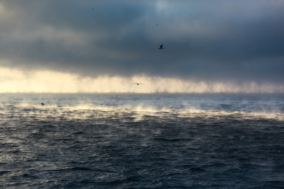 Тёплое течение Гольфстрим, вода плюс 8 по цельсию, воздух - минус 8.