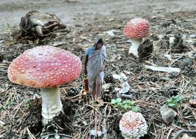 У меня возникло некоторое подозрение, что это коллаж, и мухоморы взяты совершенно из другого кадра